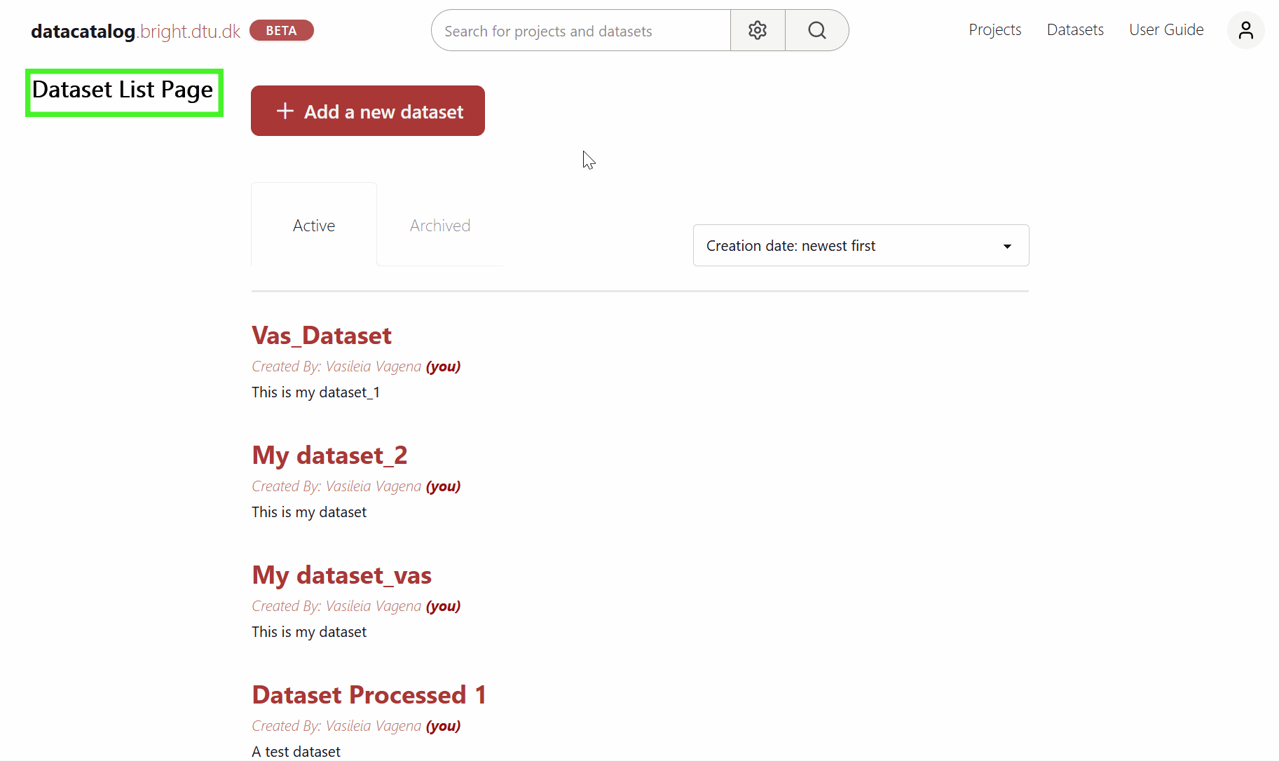 The Datasets section in the Data Catalog can help you organize and manage research data efficiently. Its structure is similar to the Projects section, so if you have explored projects before, you will find the navigation familiar.