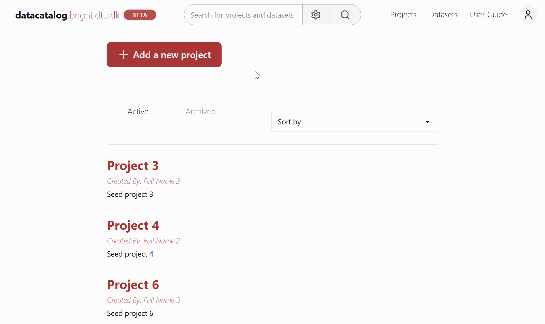 The Search bar is available throughout the platform, so you can easily find projects and datasets from different views.