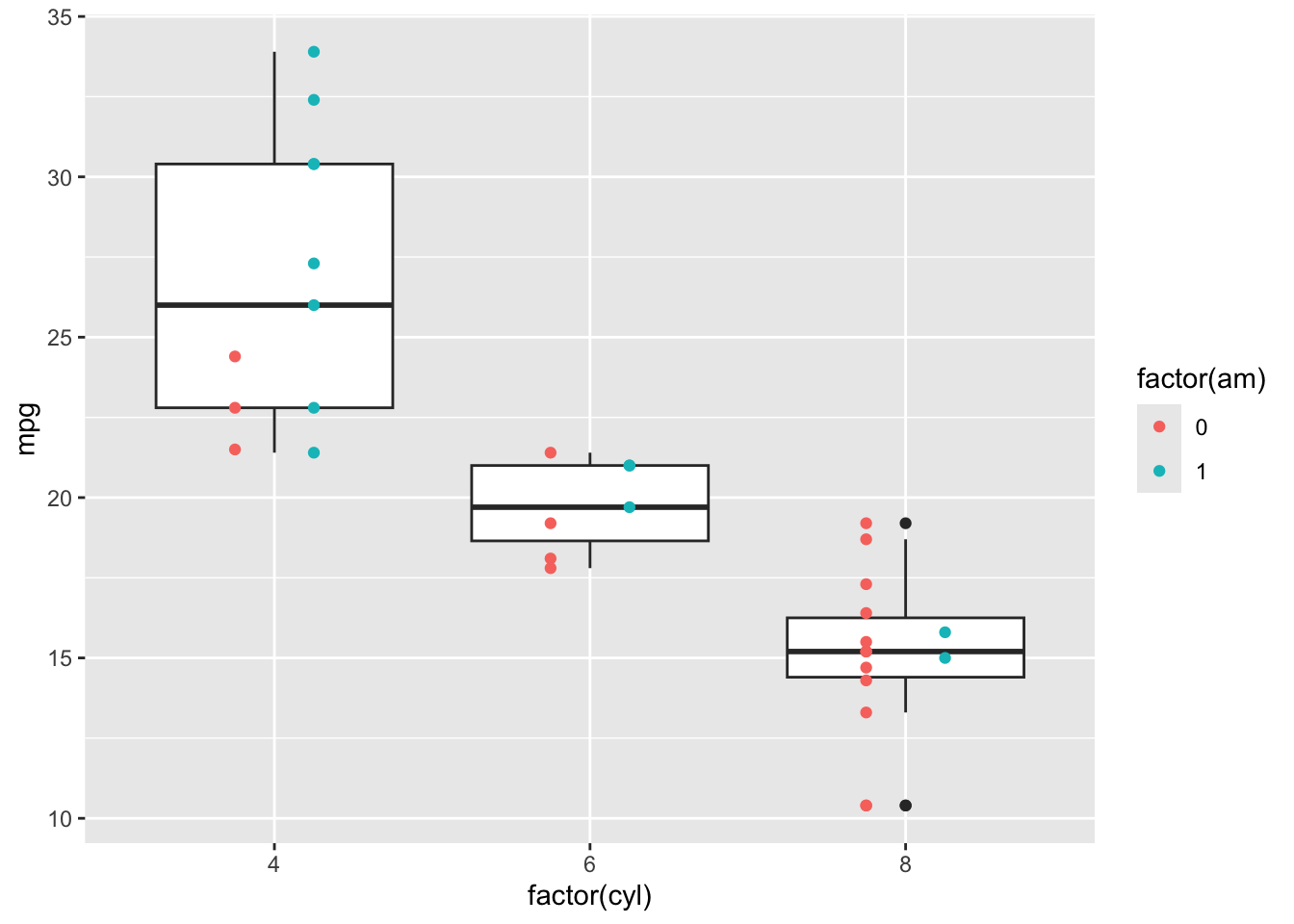 ggplot(mtcars,aes(factor(cyl),mpg))+
