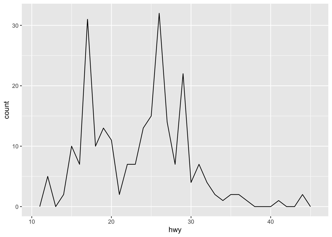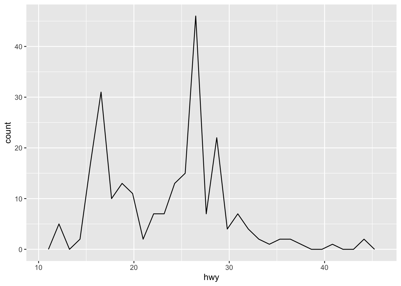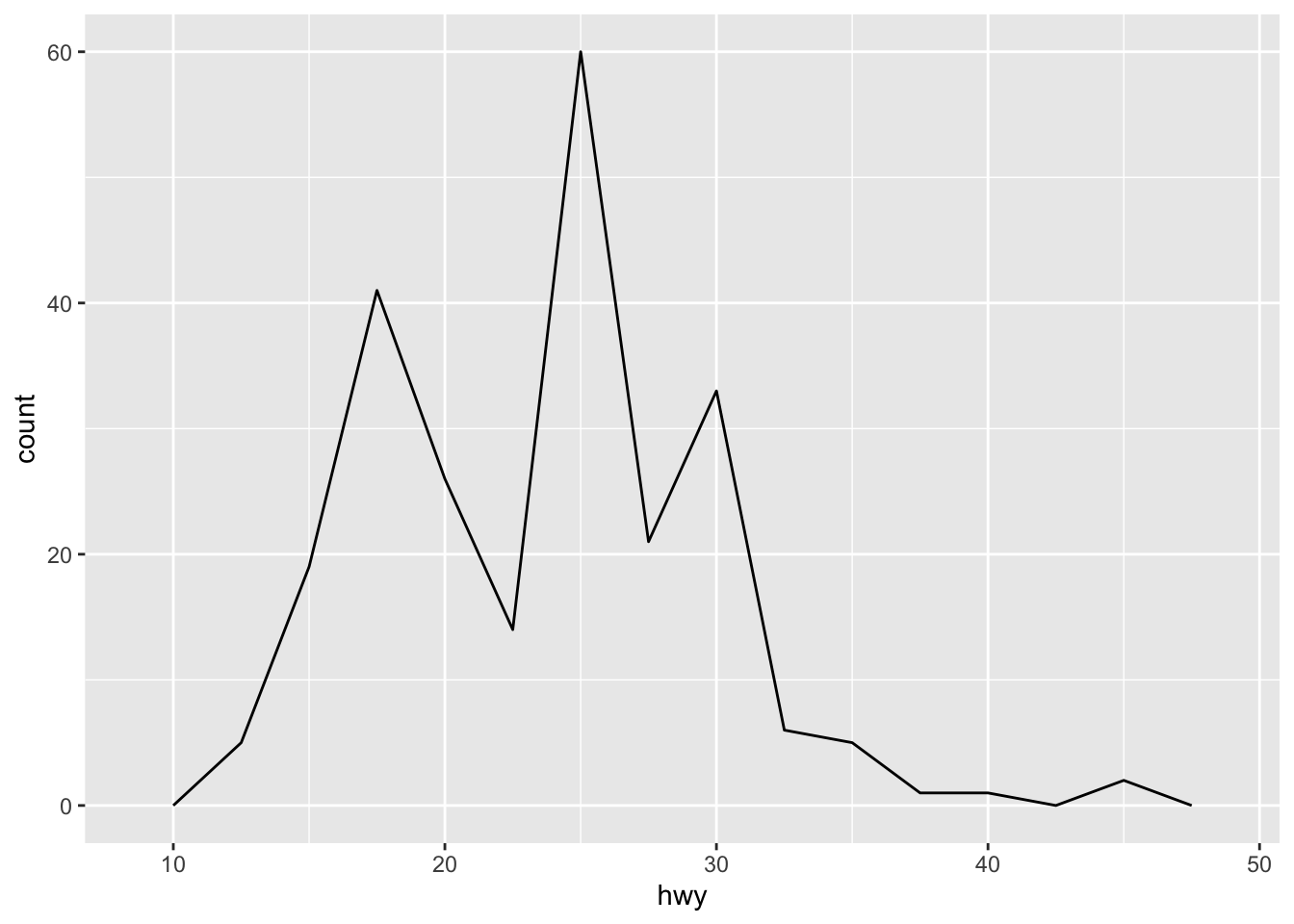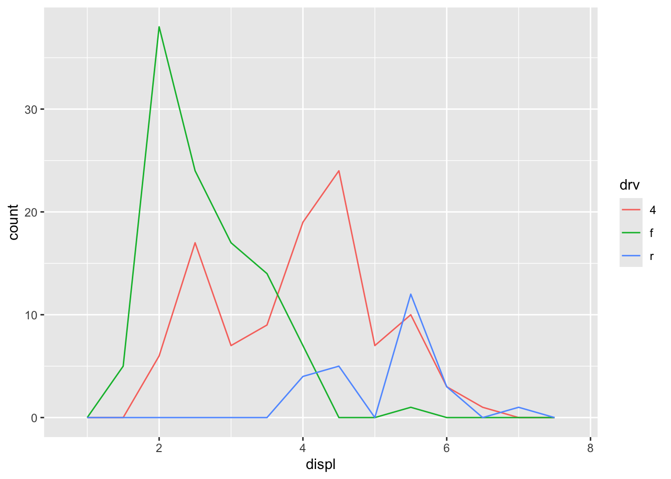 An alternative to the frequency polygon is the density plot, geom_density().